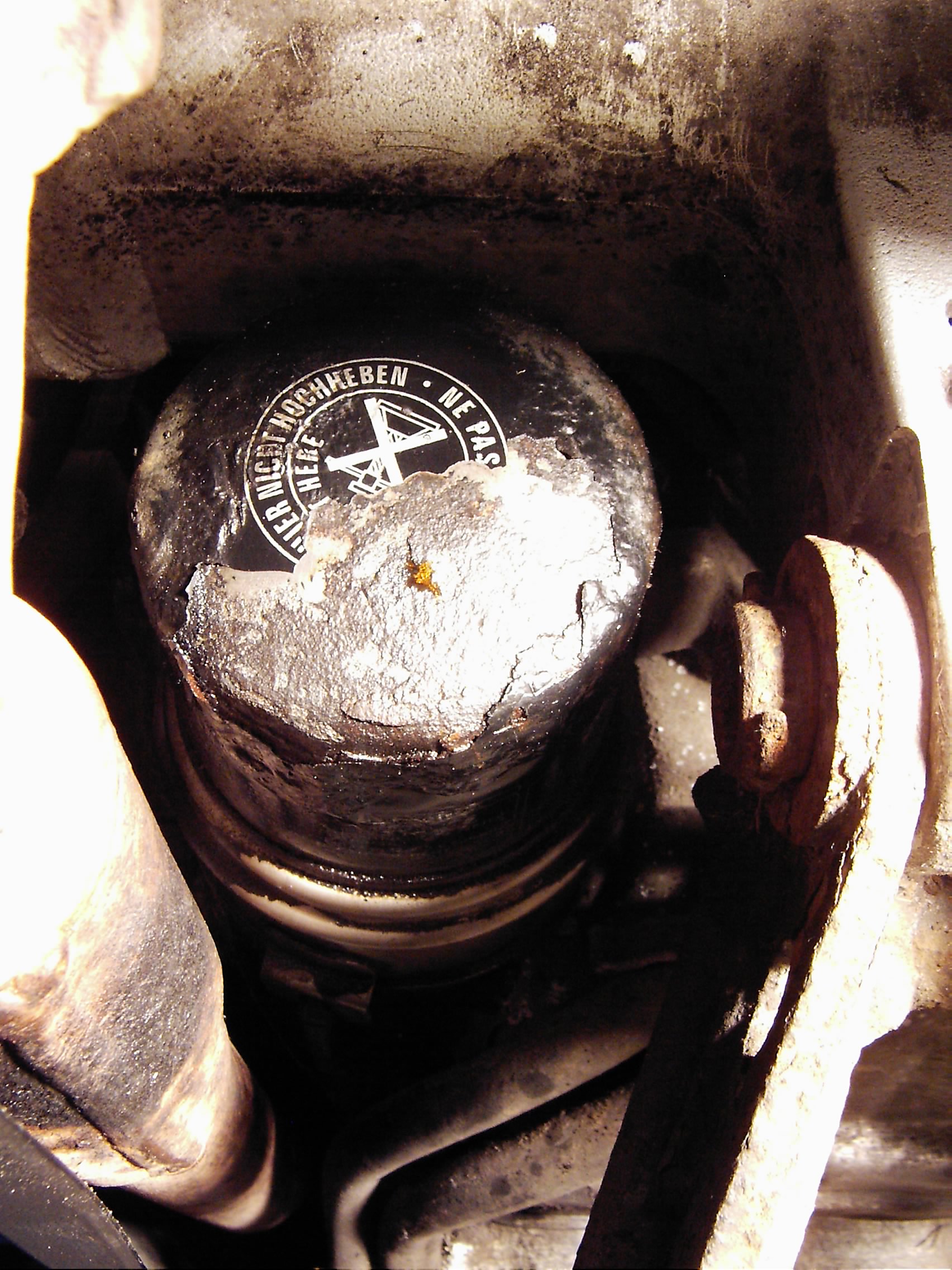 The other issue of note concerned the oil filter. I'd returned in the early hours from a visit to a mate and when I went back out to put the bike away I spotted, in the glare of the security light, a small pool of oil under the bike. A quick glance showed it to be coming from somewhere around the oil filter; a wipe with a rag was followed by a scrub with a wire brush to reveal a pinhole in the end of the oil filter that was allowing oil to escape... all over the exhaust, swingarm, stands and worst of all the back tyre! A swift oil and filter change followed (not, I hasten to add, at 2AM!) and normal service was resumed. The filter was well within its service life and was a genuine Honda item. I'll have to keep an eye on that, I think... maybe a rubber flap or something to keep the road crud away. Good job I spotted the leak or an unexpected slide into the scenery could have been on the cards, to say nothing of a seized engine!