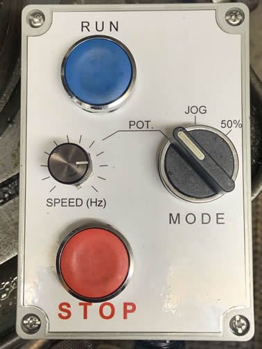 The odd angle is to reduce the amount of light that was being reflected from the display. GL-08 is an error code which the DRO unit shows if there's no digital scale connected; in this case the Z-axis as I still haven't worked out how to mount the scale for it on the front of the Perrin's head! A quick look around the internet shows the 3-axis display is probably no longer available, or at any rate as rare as hens' teeth. Amadeal haven't stocked it for some years and I can only find a couple of companies in the USA who still list it on their websites. UPDATE 181224 OK, so it took a while to get around to it but I finally made a start on installing the third linear scale to the Perrin to give me DRO on the Z-axis (quill). The issue had always been where to position the scale and how to attach it to both the quill itself and the head of the machine, without interfering with any of the controls or obstructing access to the spindle locking nuts etc. For some reason this time it took but a few moments to realise how it might be achieved, so a piece of 12mm alloy plate was put through the bandsaw to produce a mounting plate for the reading head: and a bracket to connect the scale beam to the quill. The mounting plate utilises existing threaded holes in the head casting, I think there was a work light mounted there when I bought it. I slotted the upper mounting holes slightly to allow aligning with the quill, hence the two large washers (so the bolt heads don't dig into the plate around the slots). The connecting link uses a length of studding screwed in place of the clamp bolt that secures the depth stop to the bottom end of the quill. Although it would have been visually nicer if the reader head could have been more central on the plate, it had to sit lower in order for the full stroke of the beam to pass the sensing elements, and required offsetting towards the rear to clear the quill return sping housing and so that the top end of the beam, which has to pass through the plywood base of the drive belt guard, can miss the front pulley. The slot in the plywood started out quite neat as I cut it with an oscillating multitool thing, but the beam rubbed on the edge slightly and in the process of tickling (ahem) with a chisel the ply splintered and a piece broke away. So apologies to the craftsman who made the guard in the first place :D So far so good: here you can see the quill at full extent: ...but there was more to it than that as I had to dismantle it again and modify the reader head to work with the DRO unit as per the other two axes. Didn't take long; also added a capacitor across the battery terminals and a ferrite core to the data lead, but there was still a slight instability in the last digit until I remembered to earth the electronics to the frame - now it's as steady as a rock. Just over 131mm of quill travel (spindle is running in this shot): Thus inspired, I decided it was time to revisit my Teco 3-phase inverter (VFD) and make more use of its facilities. The VFD is housed in a wall cabinet with its output routed through a contactor to either the Boxford lathe or the Perrin drill. The contactor is brought into play by a switch on the cabinet and the VFD start/stop control is arranged so that the machines are mutually exclusive - I can't start them both together or start one from the other's controls. Most of the time if I need to alter the lathe's speed I just use its own continuously-variable mechanical adjuster (that's what it's there for!) but sometimes if I'm using the Perrin it would be useful to alter the spindle speed, for example as the drill size gets larger. Swapping belts between pulleys can be a bit laborious. Also, I've been using a rotary switch low down on the side of the Perrin for start/stop which means stooping over the running machine - less than ideal. What I decided I needed was a pendant control, similar to most VFD installations, but in this case only to start/stop the drill, retaining the lathe's existing controls, but also allowing remote speed control that will work with either machine. Most VFDs have the facility to switch in a 'jog' function which drops the output frequency (and hence motor speed) to a few Hertz. Reading the Teco's manual properly revealed that as well as jog it has three other presets which can be programmed in various combinations to suit the job; if, say, it was controlling a pump or fan it would permit switching flow rates. As it happened I had a spare 3-way Telemecanique switch left over from the Colchester control panel I built a decade or more back so I programmed the VFD to give me switchable 6Hz and 25Hz (being the lowest and 50% speeds). A spare diecast box fell victim to a step cutter and the speed control pot was robbed from the wall panel to join a start/stop switch pair. A length of 8-core screened cable and suitable glands were also located. There was a slight delay while I worked out how to change from the rotary on/off switch on the Perrin to non-latching start/stop buttons. The VFD needs to see an 'on' signal to keep it running. The Boxford takes care of this using one of its original contactors which holds in until you press the lathe's stop button. To replicate this I needed a relay for the Perrin... and that needed a power supply. I couldn't find any information in the VFD manual to tell me how much current its onboard 12V supply (used for the control inputs) can deliver and didn't really want to start hanging relays off it in case it went pop. As luck would have it, whilst up in the loft digging out wrapping paper and the like for Christmas '24, I decided to bin lots of old computer hardware, amongst which was a Digital laptop PSU giving 11V at a couple of Amps - more than enough for the job at hand. The circuitry was duly constructed and - it didn't work. It tried to, but what I was asking the relay to do was switch its own coil feed, so as soon as it tried to change over, it dropped out. Several times a second. I 