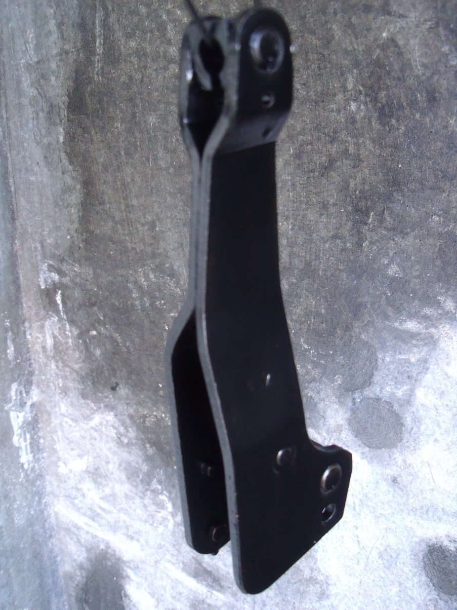 First thing to do, then, was to extract the calipers. Unlike most modern cars where the hydraulic rear caliper doubles as the handbrake, this Girling design is a two-part system. The main, hydraulic caliper responds to the footbrake pedal as usual, but the handbrake function is provided by a separate pair of cable-operated calipers mounted on top of the hydraulic units. The whole device is so bulky it looked unlikely that either side would simply drop out through the chassis tubes so I opted to remove the handbrake calipers first. Simple enough: disconnect the cable, bend back the locking tabs, extract 4 pivot bolts and... needless to say it wasn't that simple as the pivots were largely gripped by corrosion in the castings. With the units finally removed, I snipped the lockwires on the main caliper bolts and set to work with a 5/8" spanner. The lower bolts are, relatively speaking, easy to undo, but the top ones are out of sight and obstructed by hydraulic pipes, chassis tubes etc. and take some dexterity to extract. You can't actually remove them as the differential casting is in the way; you undo them fully and then, once you've disconnected the hydraulic lines (or, as I had to, clipped them with cutters as the unions were seized-in) "simply" pop the calipers off and out through the chassis rails (read: wriggle and squirm until free!). I found the easiest access for both was to the left of the car.